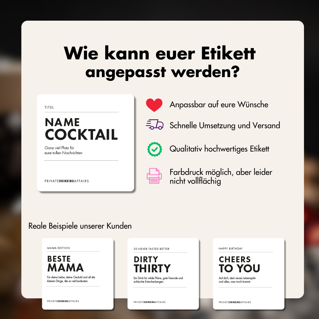 - Das perfekte Geschenk: Unsere edlen Cocktails sind ideal zum Verschenken. Personalisiert.