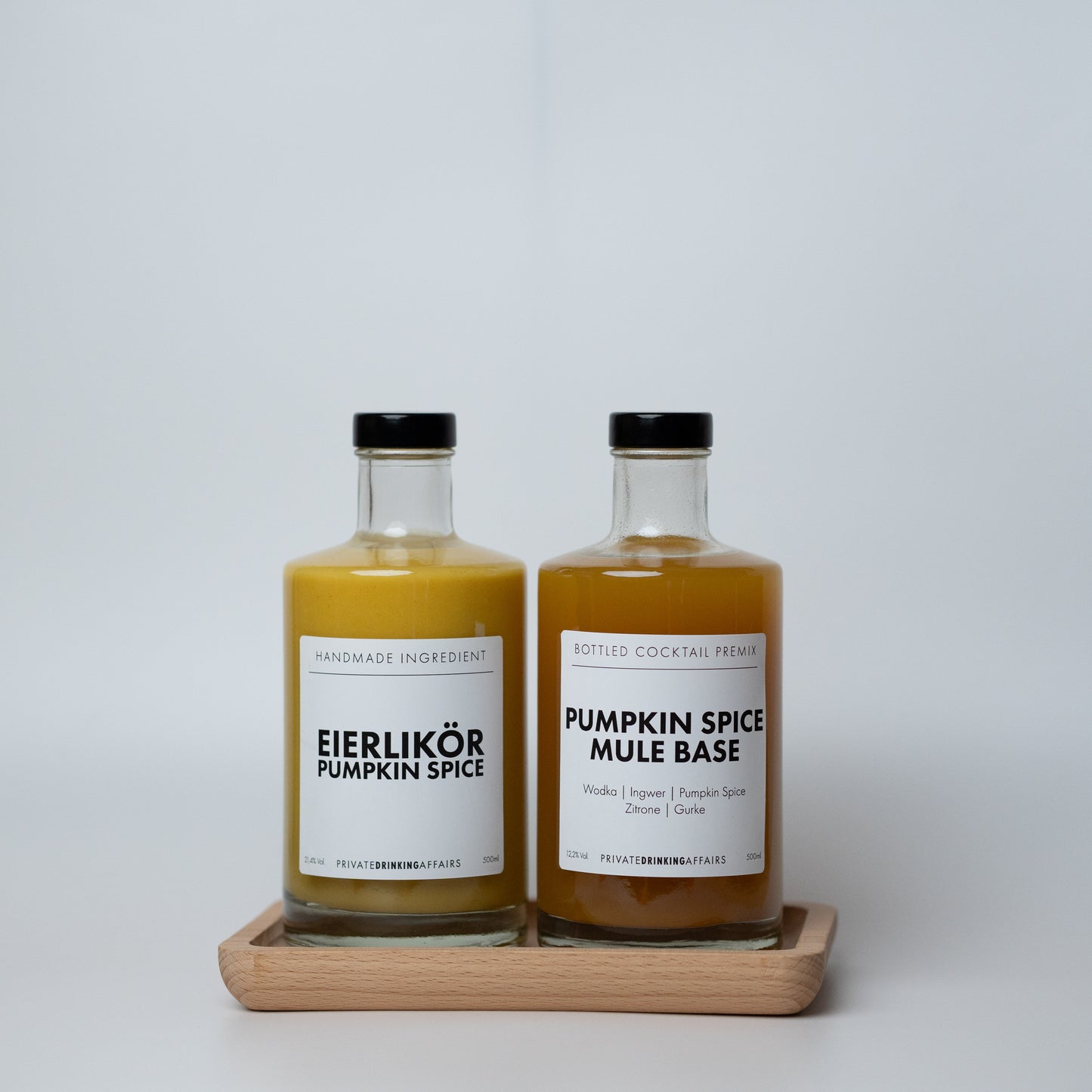 den samtig-würzigen Pumpkin Spice Eierlikör und die spicy-frische Pumpkin Spice Mule Base.